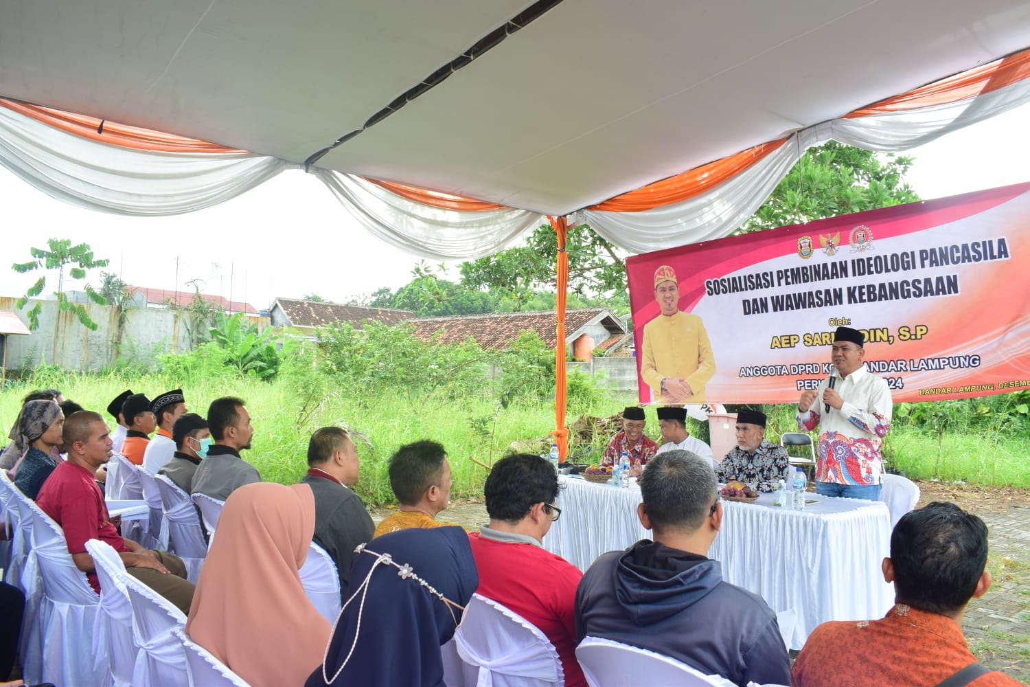 Bandar Lampung – Wakil Ketua DPRD Bandar Lampung Aep Saripudin melaksanakan kegiatan Sosialisasi Pembinaan Ideologi Pancasila dan Wawasan Kebangsaan (PIP-WK ), Minggu (11/12) Jl. Untung Suropati No. 03 Kel. Labuhan Ratu, Kec. Labuhan Ratu.