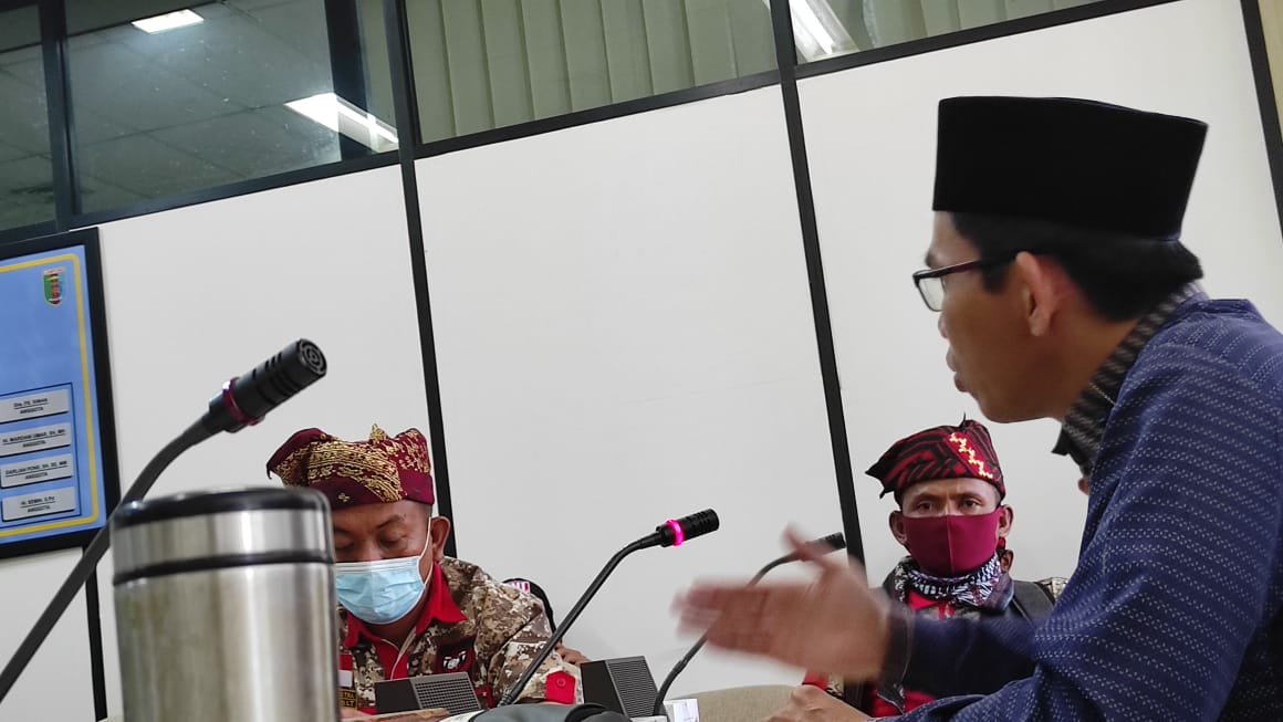 Dengan membawa semangat kepahlawanan Raden Inten, 30 orang perwakilan dari Gema Masyarakat Lokal (GML) Provinsi Lampung menggunakan Tukkus saat beraudiensi dengan Fraksi PKS DPRD Lampung, Selasa (30.