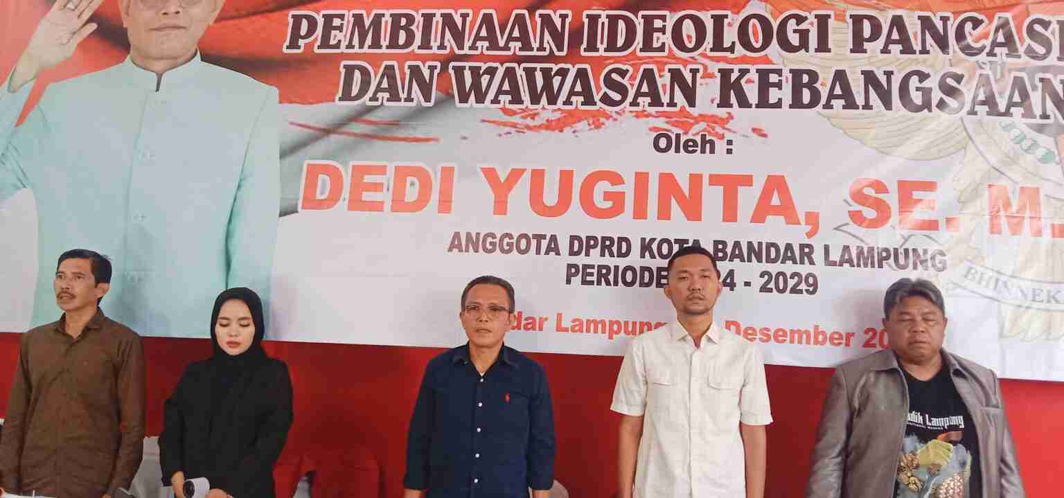 “Salah satu pemgamalan sila Pancasila adalah yang tidak mengolok-olok tetangga,, contoh jika tetangga sedang ibadah jangan diganggu, biarkan dia beribadah sesuai dengan agama dan keyakinannya,” jelas Dedi Yuginta, pada genda sosialisasi Pembinaan Ideologi Pancasila dan wawasan kebangsaan (PIP-WK) di Kelurahan Kota Baru, Kecamatan Tanjung Karang Timur (TKT) pada Senin (01/12/2025).