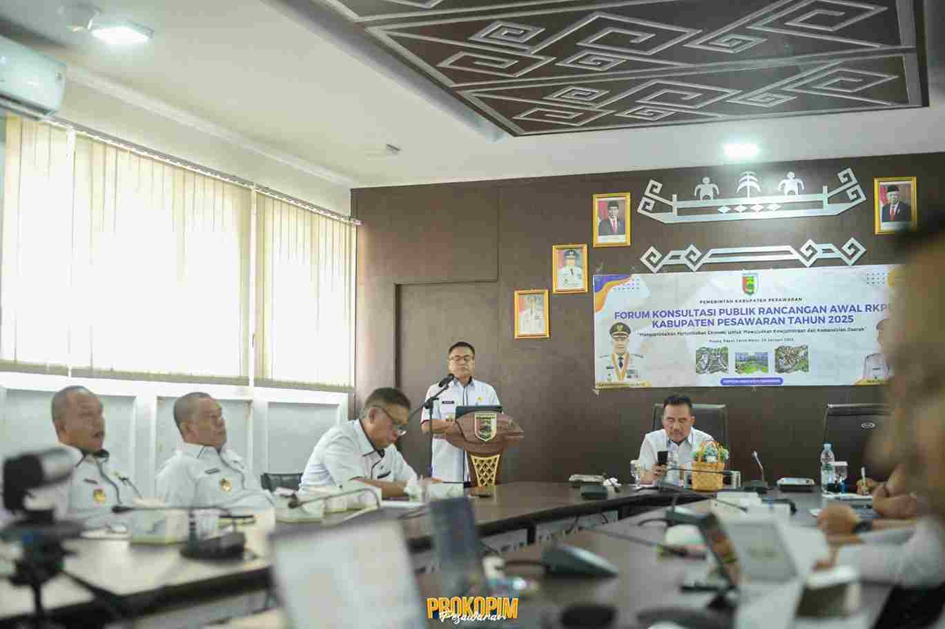 Demikian disampaikan Bupati Pesawaran Dendi Ramadhona melalui Sekretaris Daerah Kabupaten Pesawaran Wildan saat membuka rangkaian acara Konsultasi Publik Rancangan Awal Rencana Kerja Pemerintah Daerah (RKPD) Kabupaten Pesawaran Tahun 2025 di Aula Teluk Ratai Pemkab Pesawaran, Rabu (24/1/2024).