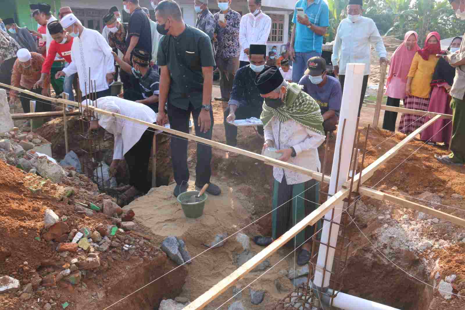 PRINGSEWU – Bupati Pringsewu Hi. Sujadi melakukan peletakan batu pertama sebagai tanda awal dimulainya pembangunan Masjid Jami Al-Munawaroh yang bertempat di Dusun 003 Pekon Adiluwih Kecamatan Adiluwih, Kabupaten Pringsewu, Senin, (31/05/21) pagi.