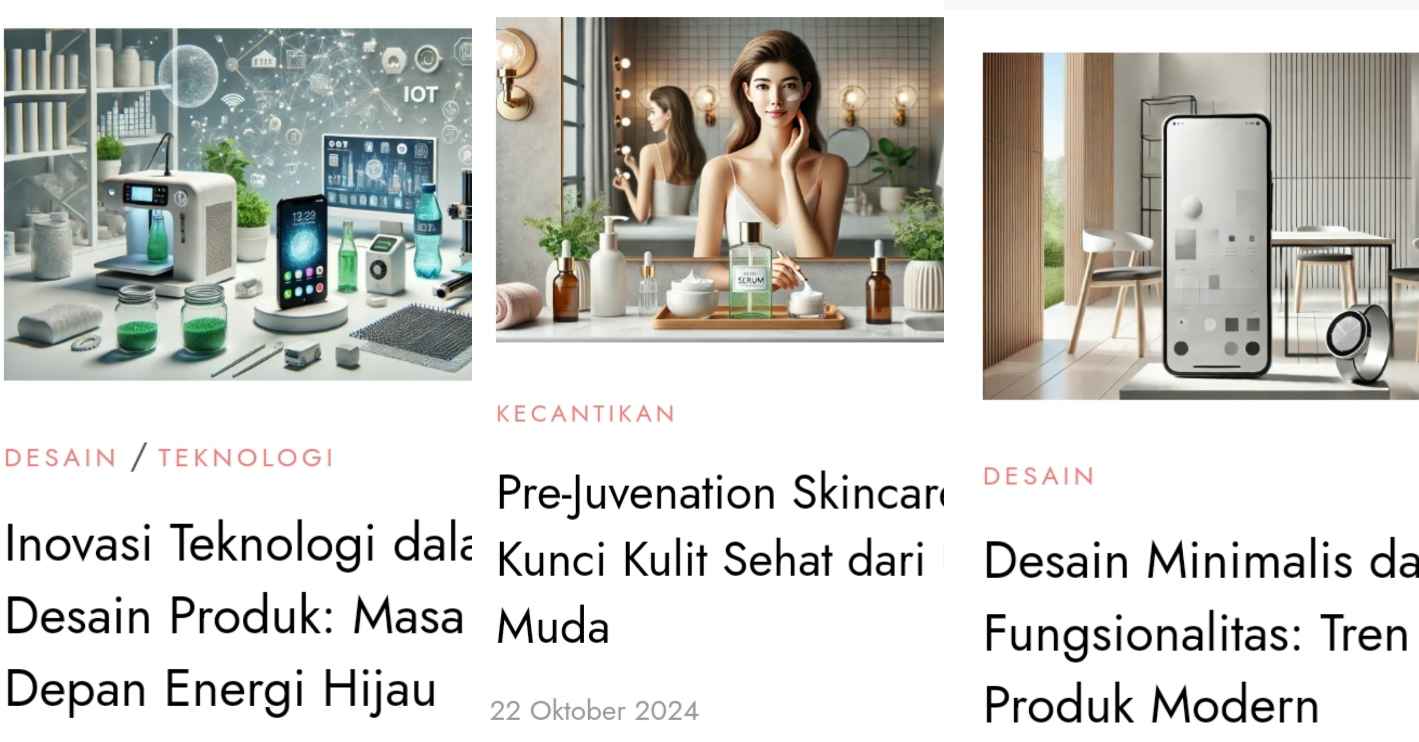 Situs ini membahas tentang inovasi teknologi, kecantikan, desain, dan ramah lingkungan.