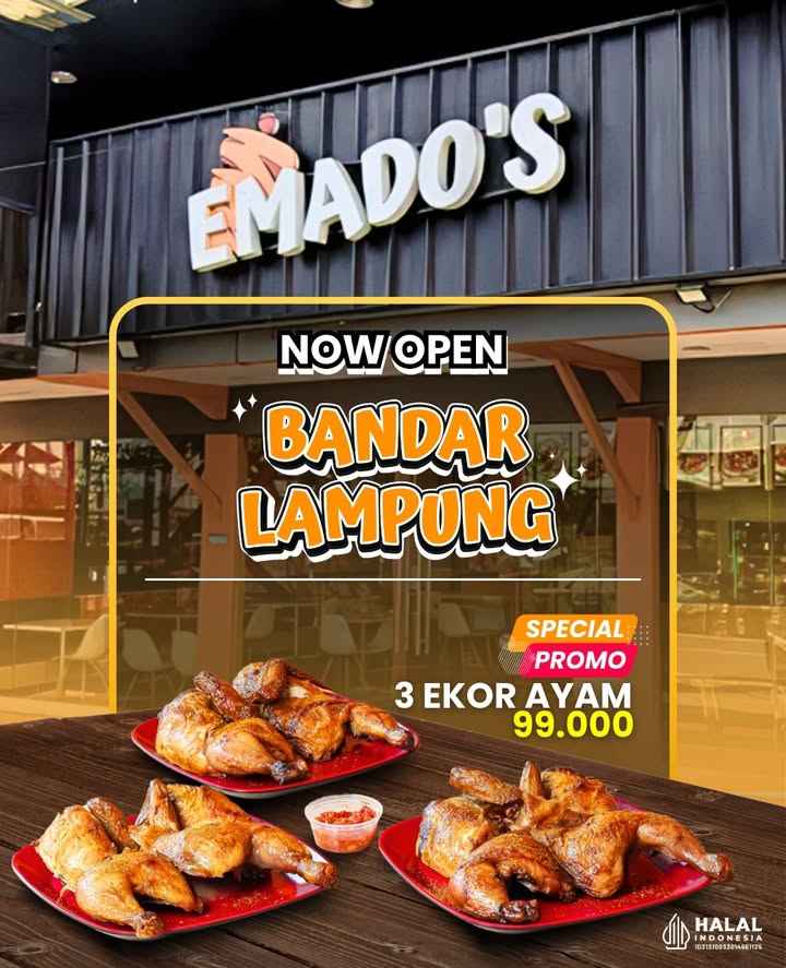 Dan, Emado’s kembali hadir untuk Anda yang tinggal di ujung Selatan Sumatera , demi memenuhi permintaan masyarakat yang ingin merasakan kenikmatan Emado’s.