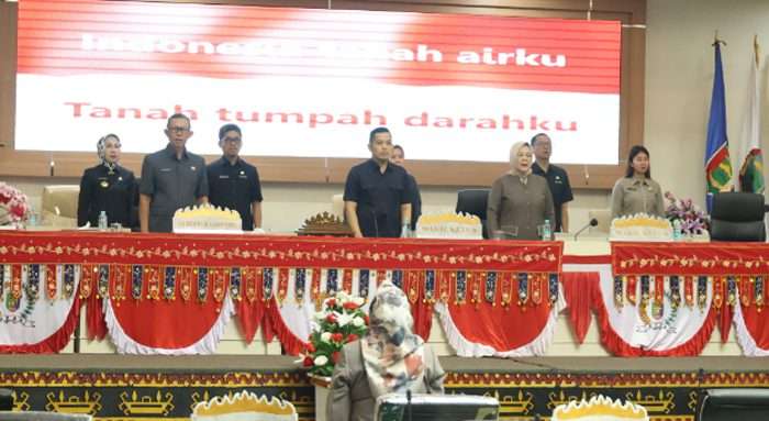 Lampung – Pj Gubernur Lampung Samsudin yang diwakili oleh Sekretaris Daerah Provinsi Lampung, Fahrizal Darminto, mengikuti rapat paripurna Dewan Perwakilan Rakyat Daerah (DPRD) Provinsi Lampung, bertempat di ruang sidang paripurna DPRD Provinsi Lampung, Senin (19/8/2024).