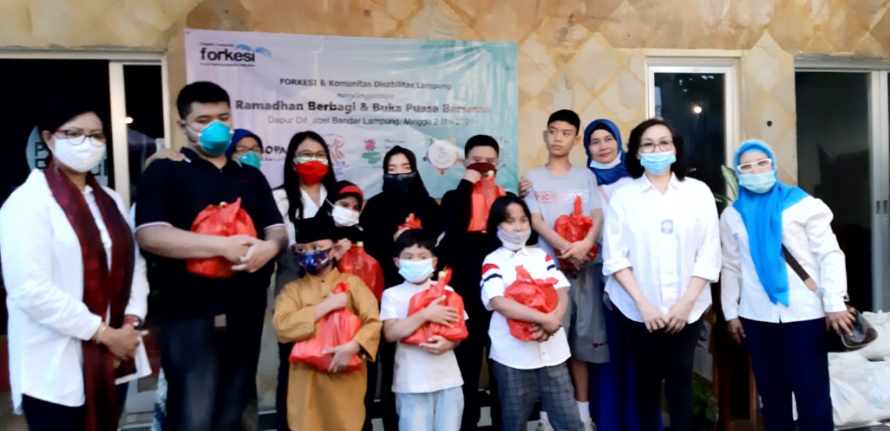 BANDARLAMPUNG — Forkesi (Forum Keluarga Spesial Indonesia) chapter Lampung Bersama beberapa komunitas disabilitas di Provinsi Lampung, mengadakan buka puasa bersama dengan Anak-Anak Disabilitas di Dapur Dif_abel Bandarlampung, Minggu (2/5/2021).