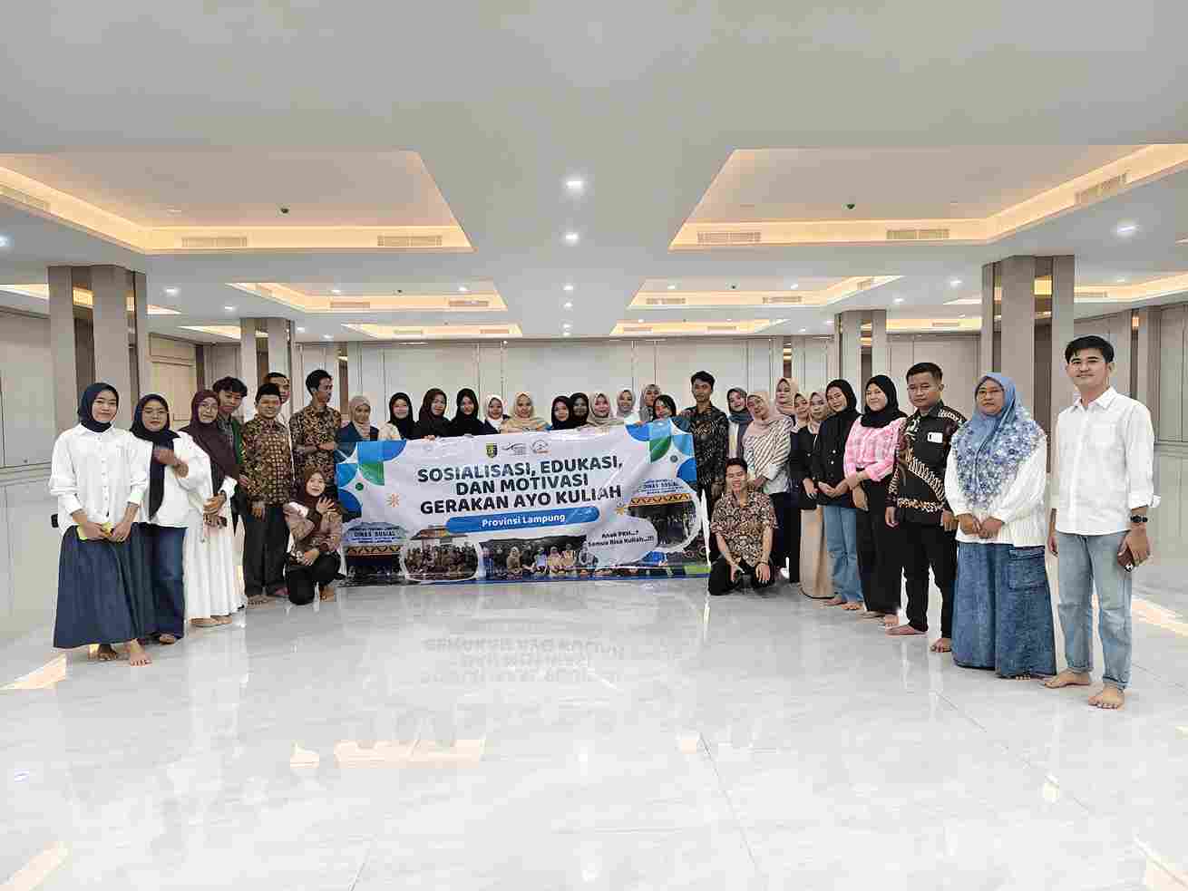 Bandar Lampung (19/10) Gerakan Ayo Kuliah (GAK) mengelar kegiatan sosialisasi dan motivasi bagi 35 mahasiswa baru angkatan 2025 yang berasal dari Keluarga Penerima Manfaat (KPM) Program Keluarga Harapan (PKH) di Provinsi Lampung. Kegiatan tersebut bertempat di ballroom Masjid Raya Al Bakrie – Kota Bandar Lampung.