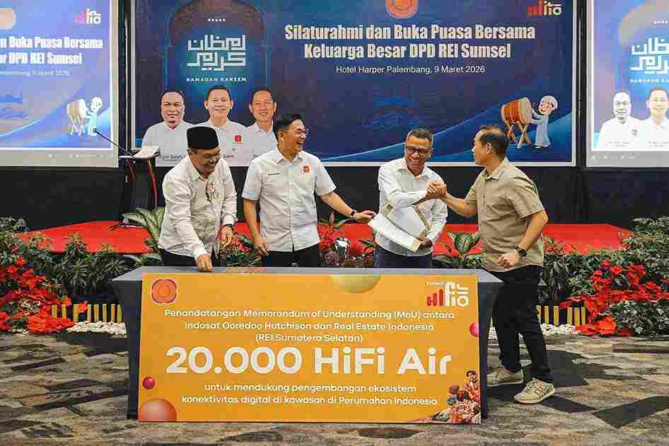 Palembang, 20 April 2026 – Memiliki rumah baru kini bukan hanya soal lokasi atau bangunan, tetapi juga konektivitas yang siap mendukung aktivitas sehari-hari. Menjawab kebutuhan tersebut, Indosat Ooredoo Hutchison (Indosat atau IOH) menjalin kerja sama strategis dengan Real Estate Indonesia (REI) Sumatera Selatan untuk menghadirkan layanan internet rumah nirkabel HiFi Air lebih dekat ke kawasan perumahan di Sumatera Selatan.