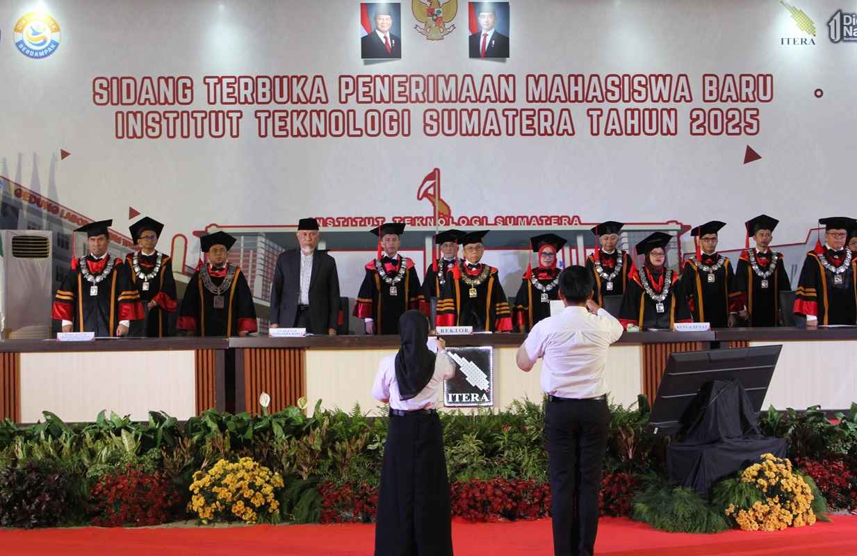 Suryasumatera.com — Lampung – Institut Teknologi Sumatera (Itera) resmi mengukuhkan 4.929 mahasiswa baru tahun akademik 2025/2026 dalam sidang terbuka yang dipimpin Rektor Itera, Prof. Dr. I Nyoman Pugeg Aryantha, di pelataran Gedung Laboratorium OZT Itera, Senin, 11 Agustus 2025.