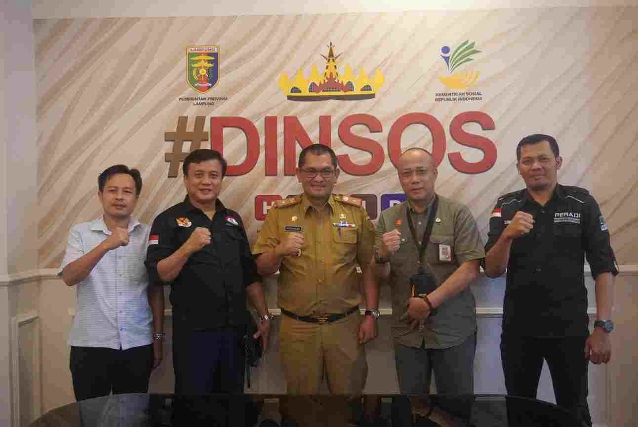 BANDARLAMPUNG — Kepala Dinas Sosial Provinsi Lampung Drs. Aswarodi M.Si menerima kunjungan Ketua Umum Dewan Pimpinan Pusat (DPP) Penggiat Anti Narkoba Indonesia (PANI) Dedi Ginanjar, Senin (26/9/2022).