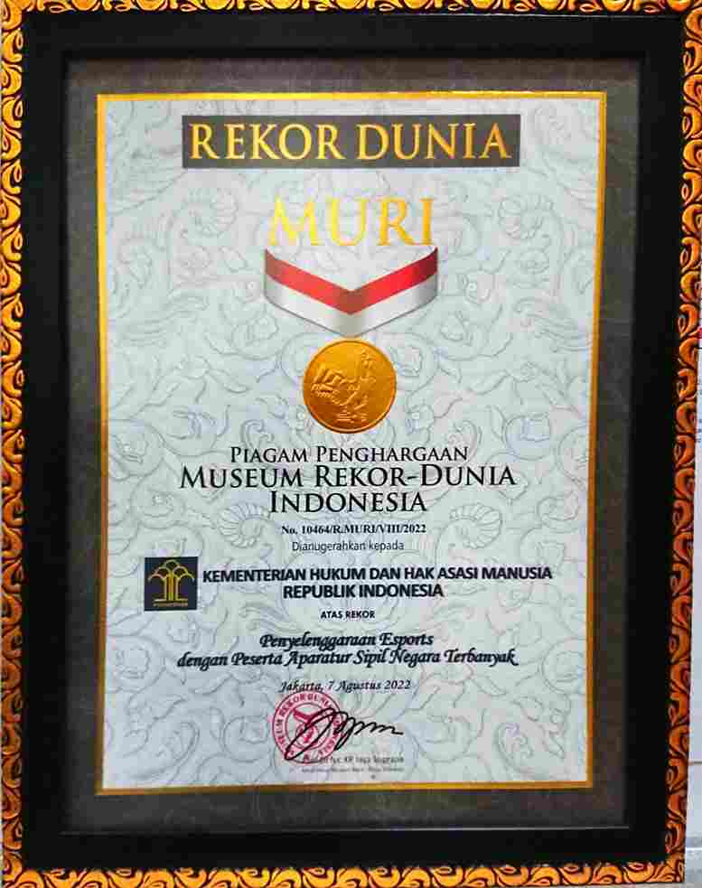 Jakarta – Kementerian Hukum dan HAM (Kemenkumham) mencatatkan dua rekor di bidang Esports pada Museum Rekor Dunia Indonesia (MURI), Minggu 07 Agustus 2022.