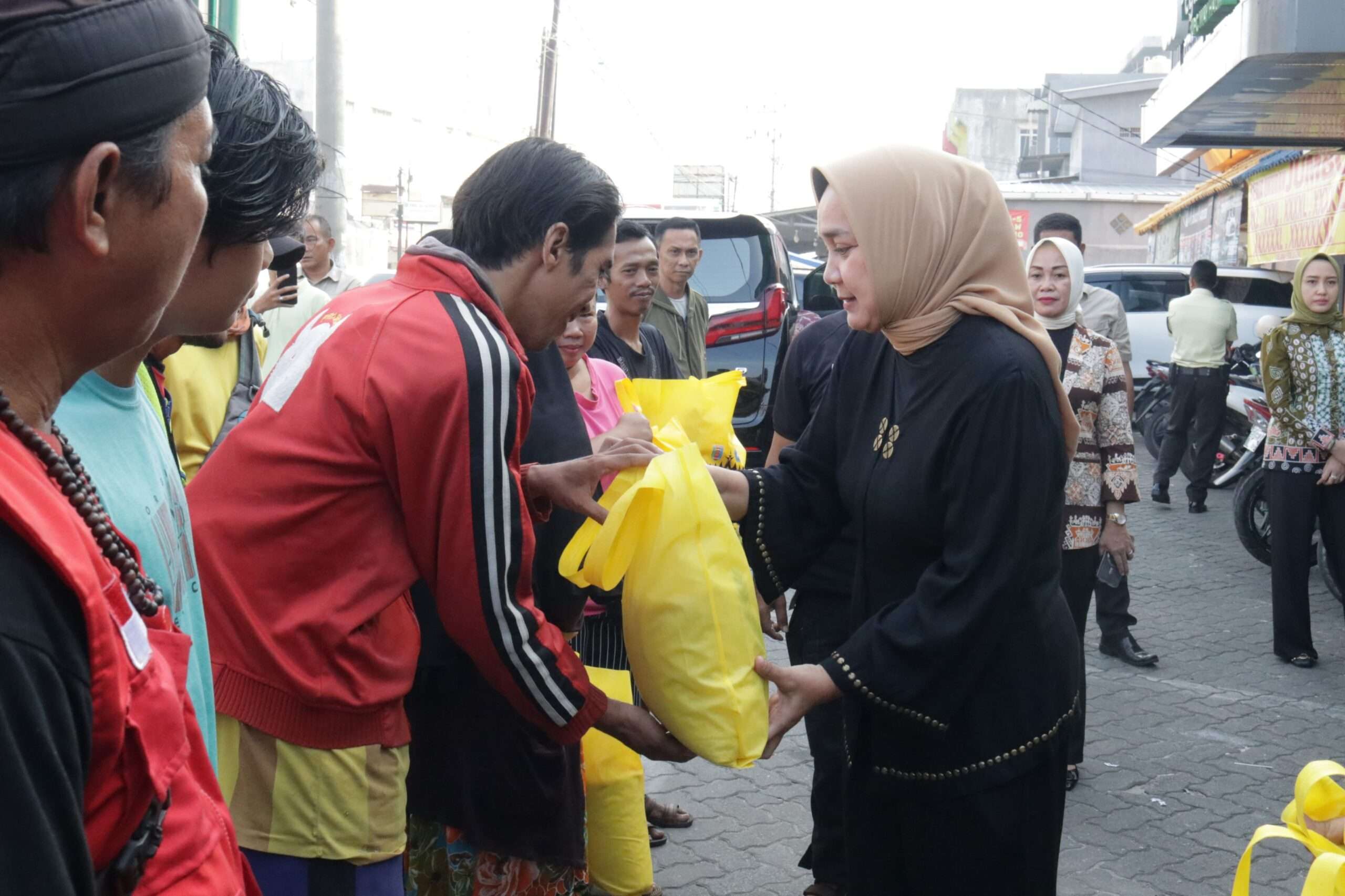 Bandar Lampung — Ketua TP PKK Provinsi Lampung Riana Sari Arinal menyerahkan bantuan sosial program SIGER (Saatnya ikut Bergerak untuk yang membutuhkan) di Kawasan Pertokoan Jl. KI Maja Way Halim Bandar Lampung, Jum’at (7/6/2024).