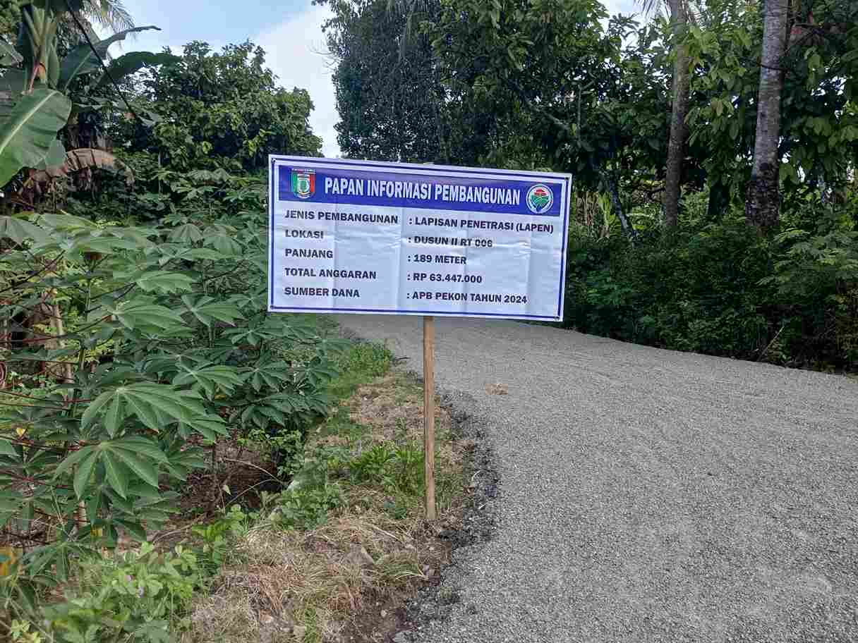 Pringsewu – Pekon Way Ngison Kecamatan Pagelaran Kabupaten Pringsewu, merealisasikan Pembangunan Lapisan Penetrasi (LAPEN) sepanjang 601 meter yang menggunakan Anggaran Dana Desa Tahap 1 Tahun 2024.
