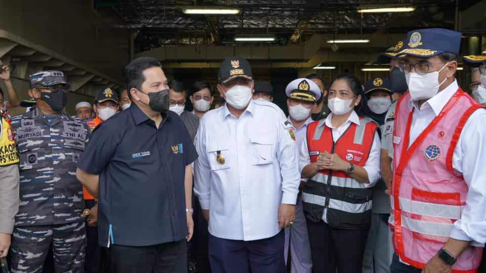Bandarlampung, PT Pelabuhan Indonesia (Persero) Regional 2 Panjang terima Kunjungan Kerja bersama sejumlah menteri yakni Menteri Badan Usaha Milik Negara Bpk Erick Thohir, Menteri Perhubungan Bpk. Budi Karya Sumadi, Menteri Pembangunan Manusia, Kebudayaan Indonesia Bpk. Muhadjir Effendy, Kakorlantas Polri Firman Shantyabudi dan Direktur Pengelola Pelindo Putut Sri Muljanto, kunjungan kerja yang disambut oleh Gubernur Lampung Arinal Djunaidi didampingi Wakapolda Lampung Brigjen Pol. Drs. Subiyanto, Kepala KSOP Kelas 1 Panjang Bpk. Hendri Ginting dan General Manager Pelindo Regional 2 Panjang Bpk. Adi Sugiri. Kunjungan kerja ini dilakukan dalam rangka pemantauan dan kesiapan arus balik Idul Fitri 1443 Hijriah tahun 2022, dimana Pelabuhan Panjang sebagai alternatif rute pelayanan arus balik, Rabu (4/5/2022).