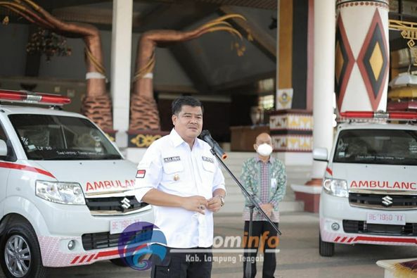 LAMPUNG TENGAH – Pemerintah Kabupaten Lampung Tengah Mendapatkan Bantuan Ambulance CSR Bank Lampung yang langsung di serahkan oleh Direktur Operasional Bank Lampung Fahmi Ridho yang di terima oleh Bupati Lampung Tengah Musa Ahmad pada hari Rabu 22 September 2021 di Sesat Agung Nuwo Balak. pada kesempatan itu pula Kepala Cabang Bank Lampung Bandar Jaya, Kepala Perangkat Daerah terkait serta Direktur RSUD Demang Sepulau Raya.
