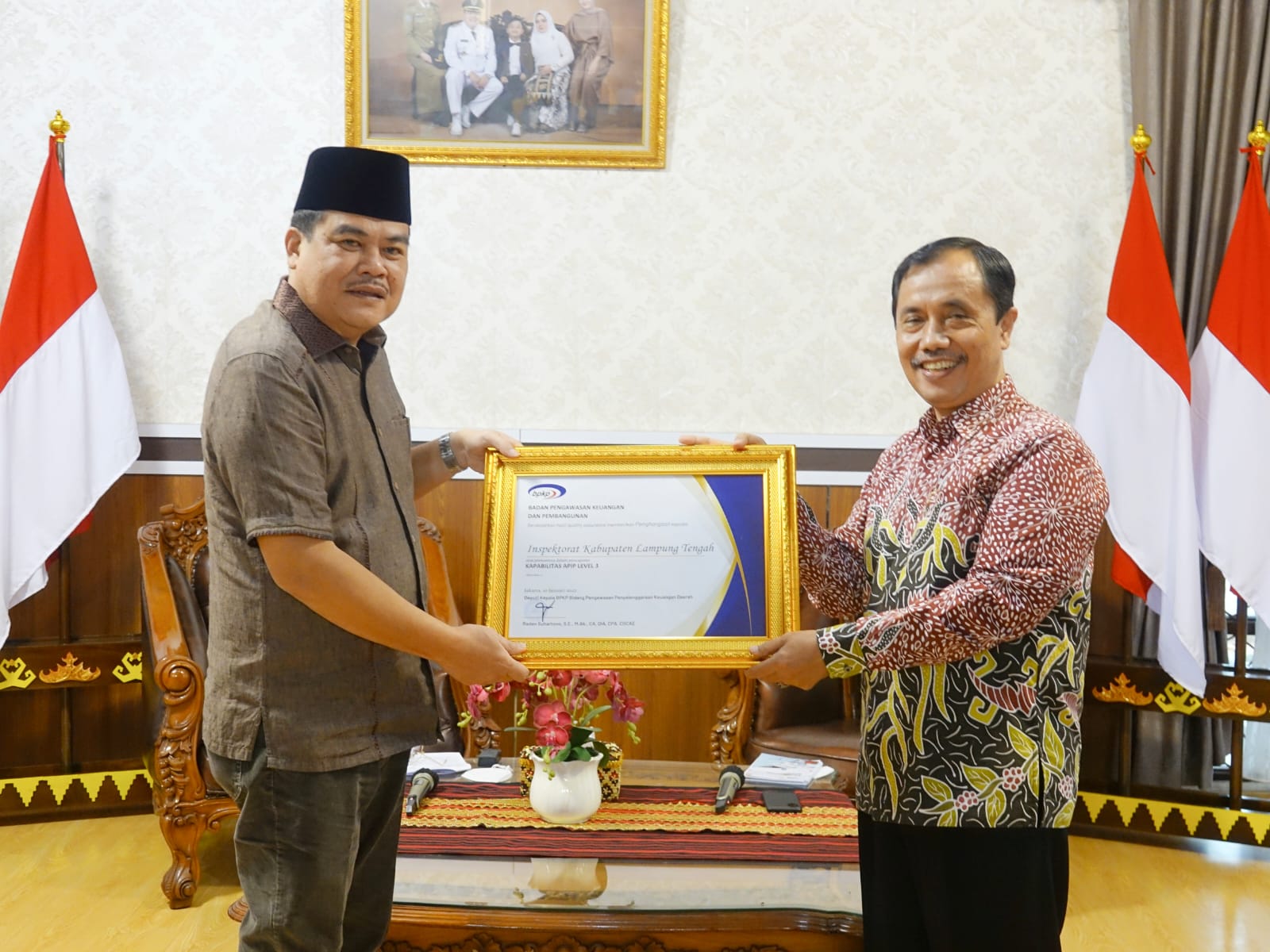 LAMPUNGTENGAH — Pemerintah Kabupaten (Pemkab) Lampung Tengah melalui Inspektorat Kabupaten Lampung Tengah menerima Sertifikat Kapabilitas Level 3 Sistem Pengendalian Intern Pemerintah (SPIP), Kapabilitas APIP dan Manajemen Resiko Indeks dari Badan Pengawasan Keuangan dan Pembangunan (BPKP).