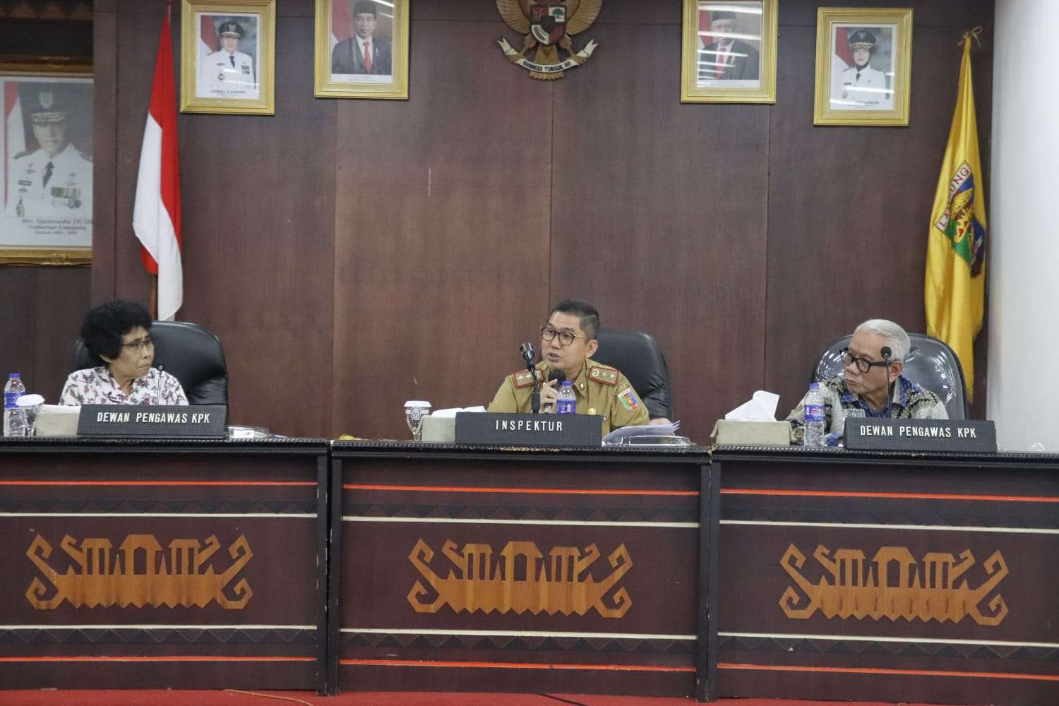Bandar Lampung — Pemprov Lampung yang diwakili Inspektur Provinsi Lampung, Fredy, mengikuti acara Pemantauan Program Pemetaan Titik Rawan Korupsi Pada Badan Usaha di Provinsi Lampung Tahun 2022 bersama Dewan Pengawas KPK RI, di Ruang Abung Balai Keratun, Selasa (27/06/2023).