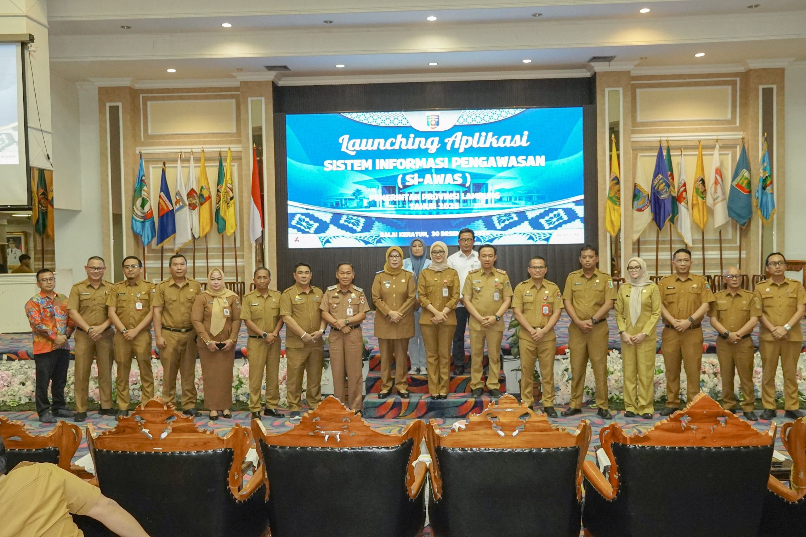 Launching aplikasi SI AWAS dilakukan oleh Wakil Gubernur Lampung Jihan Nurlela, didampingi Sekretaris Daerah Provinsi Lampung Marindo Kurniawan, Inspektur Provinsi Lampung Bayana, Kepala BPKP Perwakilan Provinsi Lampung Agus Setiyawan, serta Sekretaris Forum Penyuluh Anti Korupsi (FPAK) Lampung.