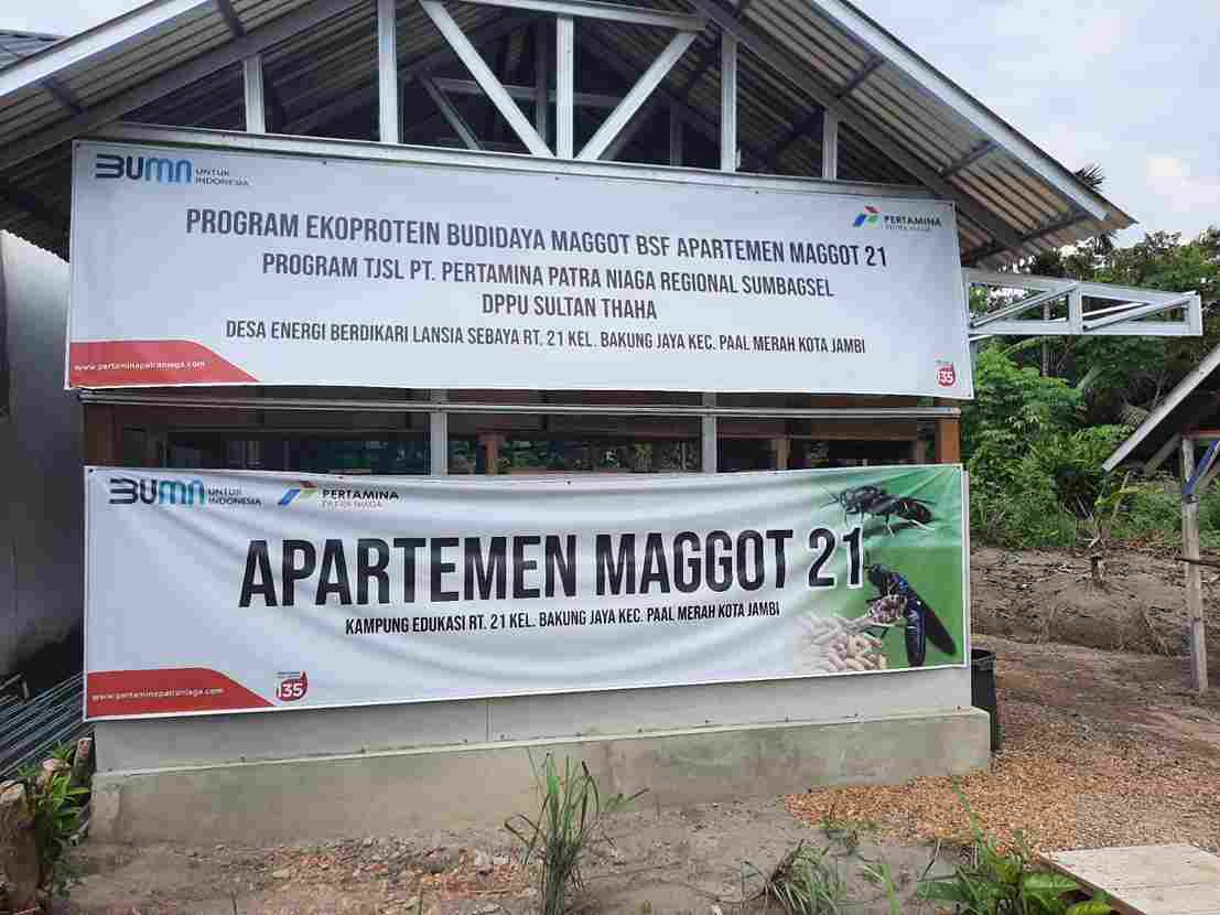 Dalam upaya pengelolaan sampah organik di Kota Jambi, Pertamina Patra Niaga Regional Sumbagsel melalui Aviation Fuel Terminal (AFT) Sultan Thaha melaksanakan Program Apartemen Maggot 21 berupa Budidaya Maggot Black Soldier Fly (BSF) di Kelurahan Bakung Jaya, Kota Jambi.