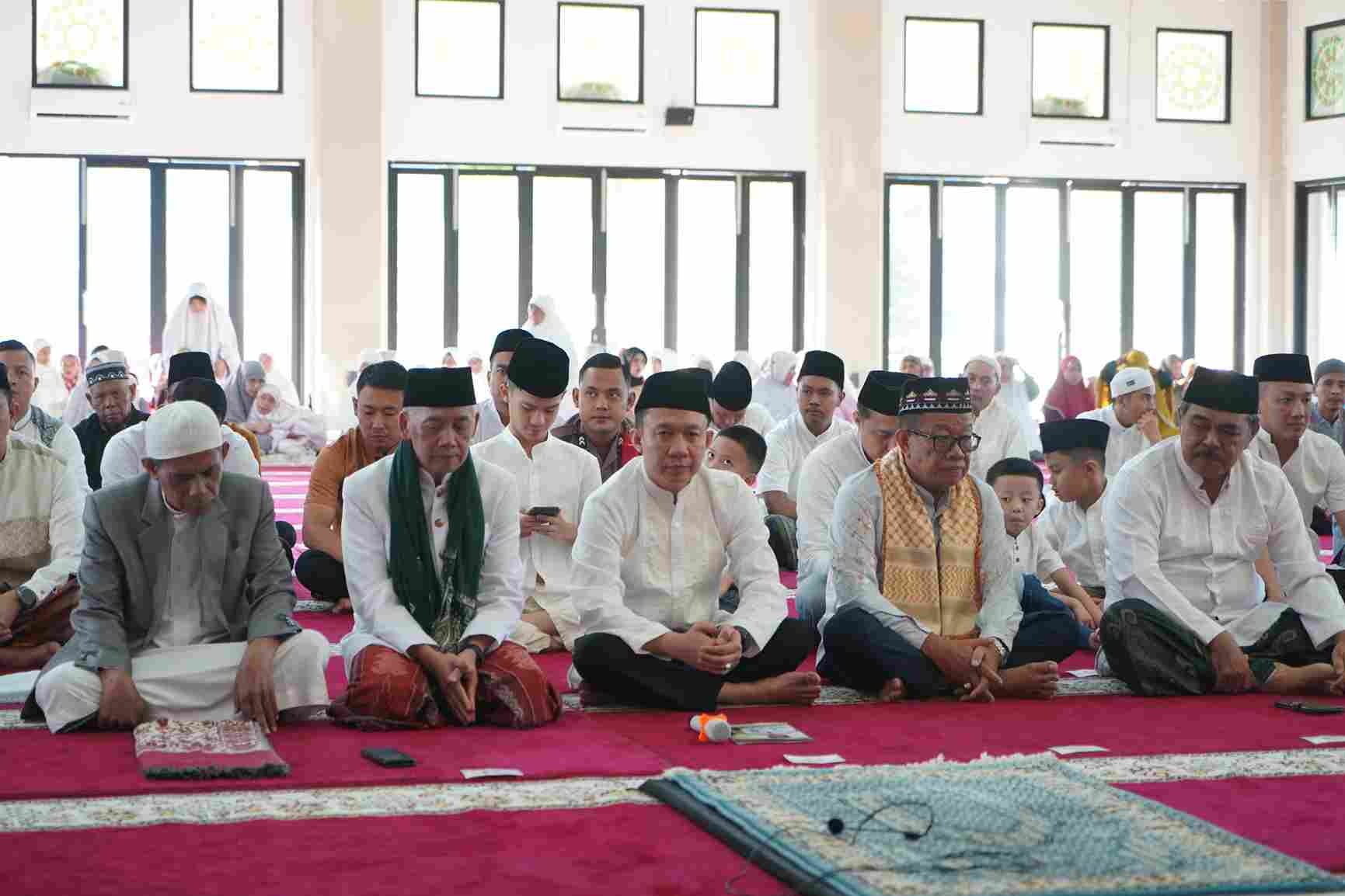 PRINGSEWU – Penjabat Bupati Pringsewu Marindo Kurniawan bersama jajaran Pemerintah Kabupaten Pringsewu melaksanakan shalat Idul Fitri 1 Syawal 1445 H di Masjid Asmaul Husna, Islamic Center, Pringsewu, Rabu (10/04/2024).