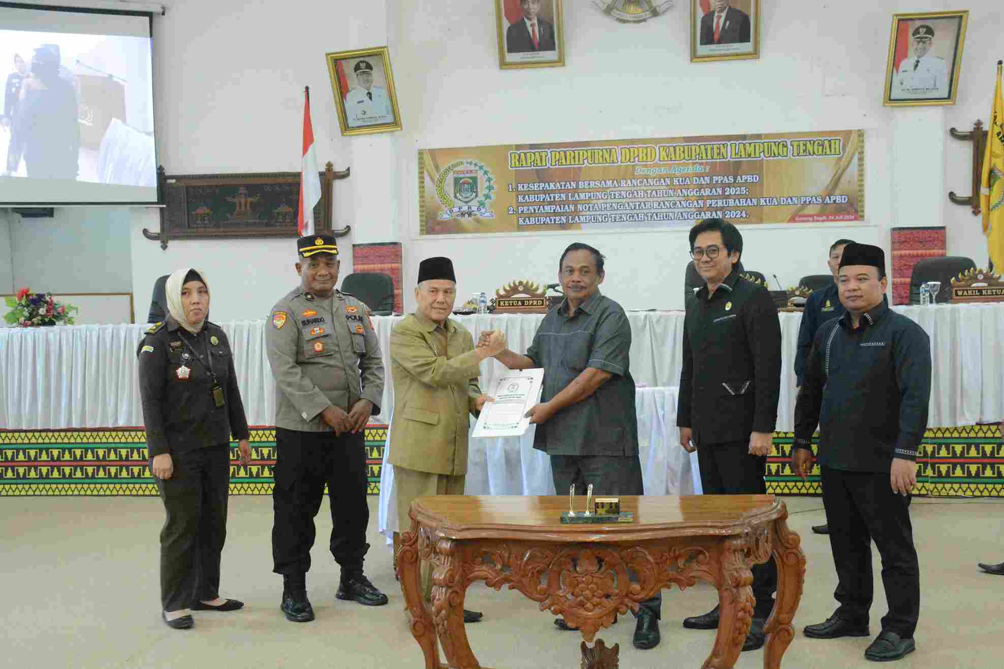 suryasumatera.com — Pj. Sekdakab Lampung Tengah Drs. Kusuma Riyadi, M.M. mewakili Bupati Lampung Tengah Musa Ahmad, S.Sos., M.M. menyampaikan kesepakatan bersama rancangan KUA dan PPAS APBD Kabupaten Lampung Tengah Tahun Anggaran 2025 dan Penyampaian Nota Pengantar Rancangan Perubahan KUA dan PPAS APBD Kabupaten Lampung Tengah TA. 2024 pada Rapat Paripurna DPRD Kabupaten Lampung Tengah, Rabu 24 Juli 2024.