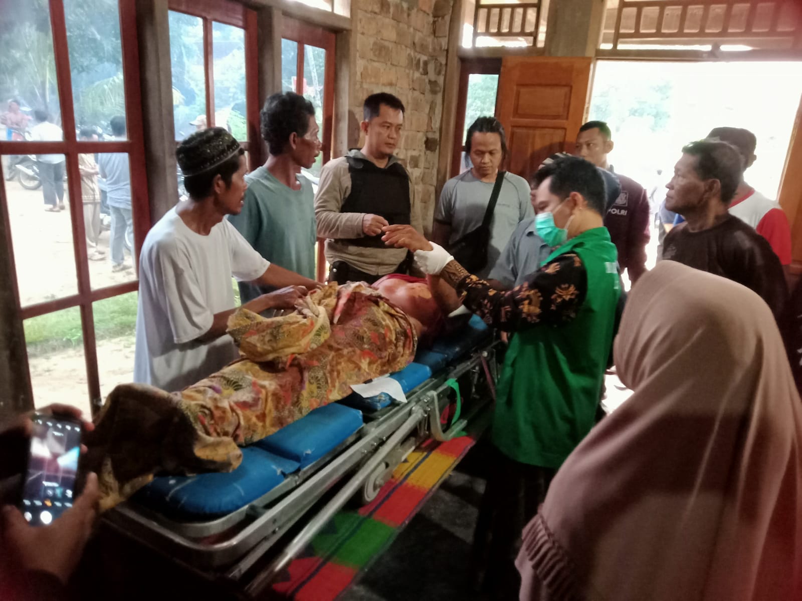 Korban bernama Jazni (44) warga kampung Pisang Indah ditemukan warga setempat telah bersimbah darah di tengah jalan dalam kondisi meninggal dunia.