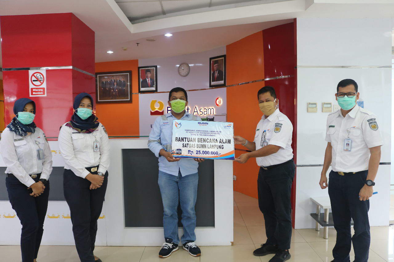 Dana tersebut diberikan kepada Satgas BUMN Lampung dalam rangka penanganan penyebaran Covid-19 sebesar Rp25 juta.