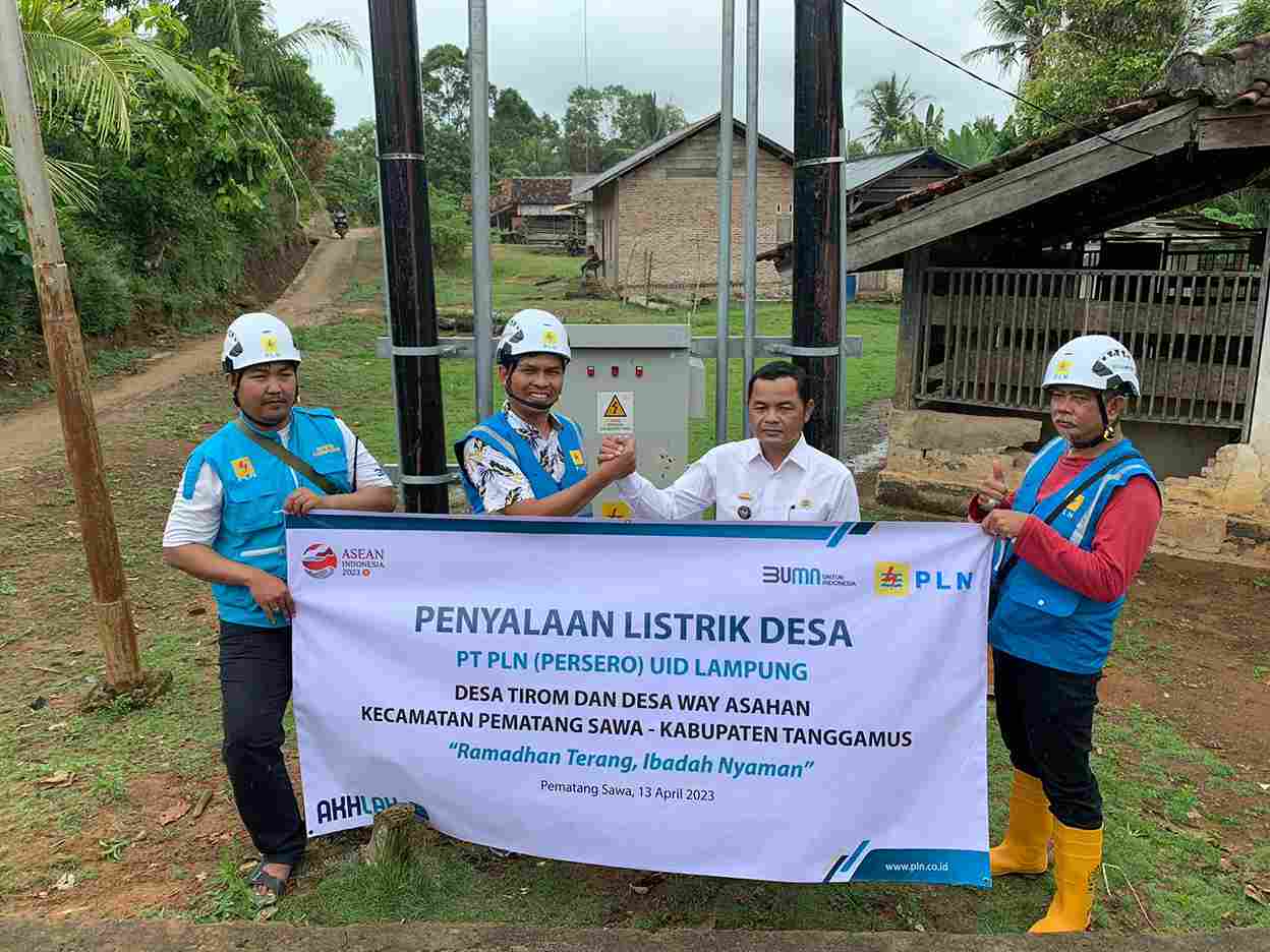 “Setelah pada bulan Maret lalu PLN berhasil melakukan penyalaan listrik di Pekon Karang Brak, pada Bulan April tahun 2023 menjelang Idul Fitri 1444 H ini kami kembali berhasil melakukan 2 desa di Kabupaten Tanggamus yakni Pekon Pekon Tirom dan Pekon Way Asahan. Tersisa 5 pekon lagi di Kabupaten Tanggamus yang kami terus kebut pekerjaan pembangunannya walaupun dengan akses dan medan yang berat,” ujarnya.