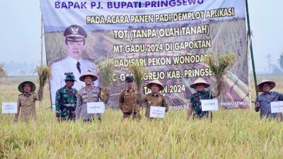 GADINGREJO – Wakil Ketua Sementara DPRD Pringsewu Suryo Cahyono, ikuti acara Panen Perdana Padi Metode Tanpa Olah Tanah,…