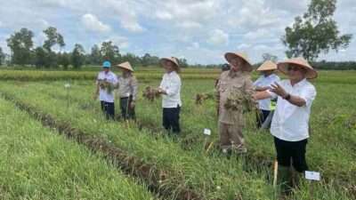 Panen perdana bawang merah dengan teknologi digital farming dilakukan di Desa Nambah Rejo, Kota Gajah, Lampung Tengah pada…